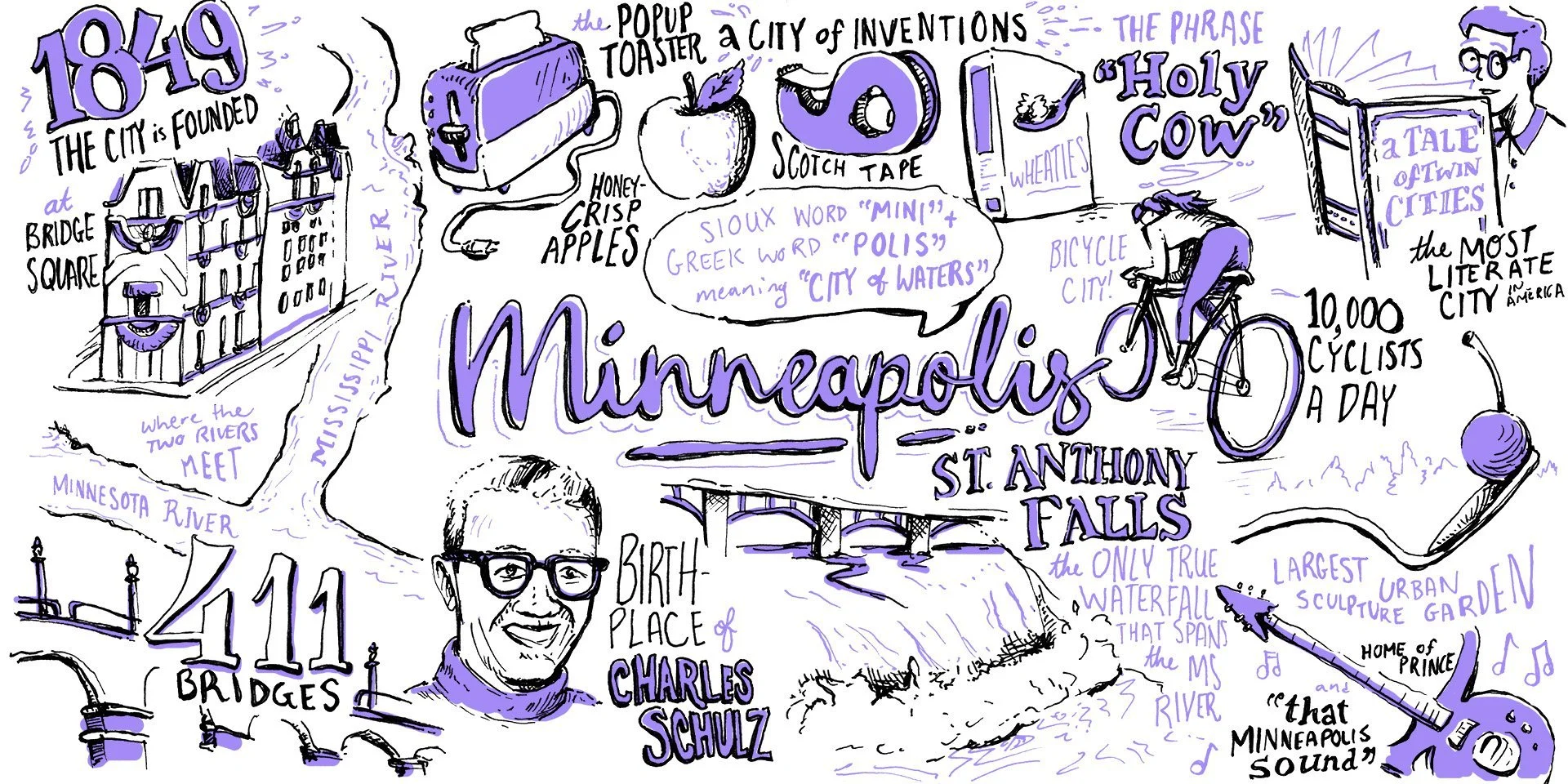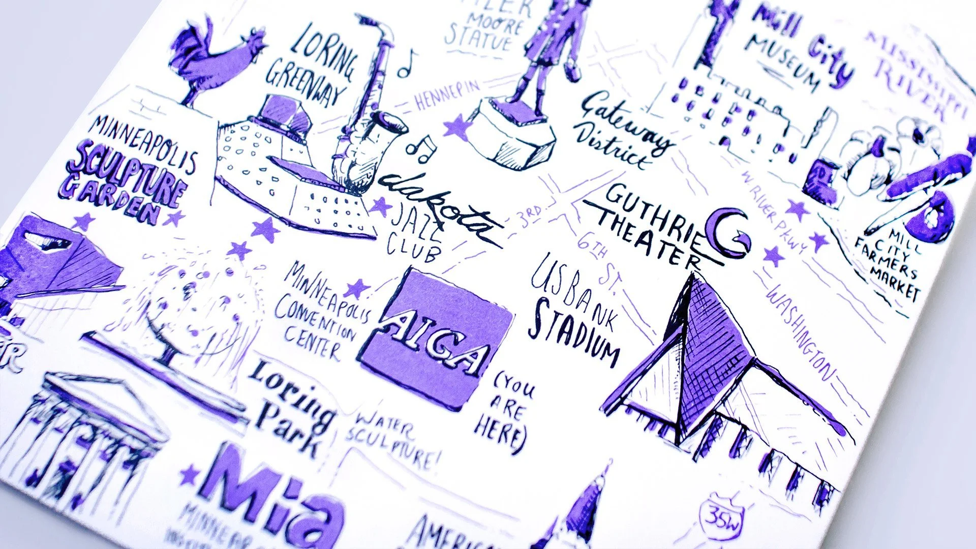 Neenah Paper's Illustrated Guide to Minneapolis for the 2017 AIGA Design Conference.