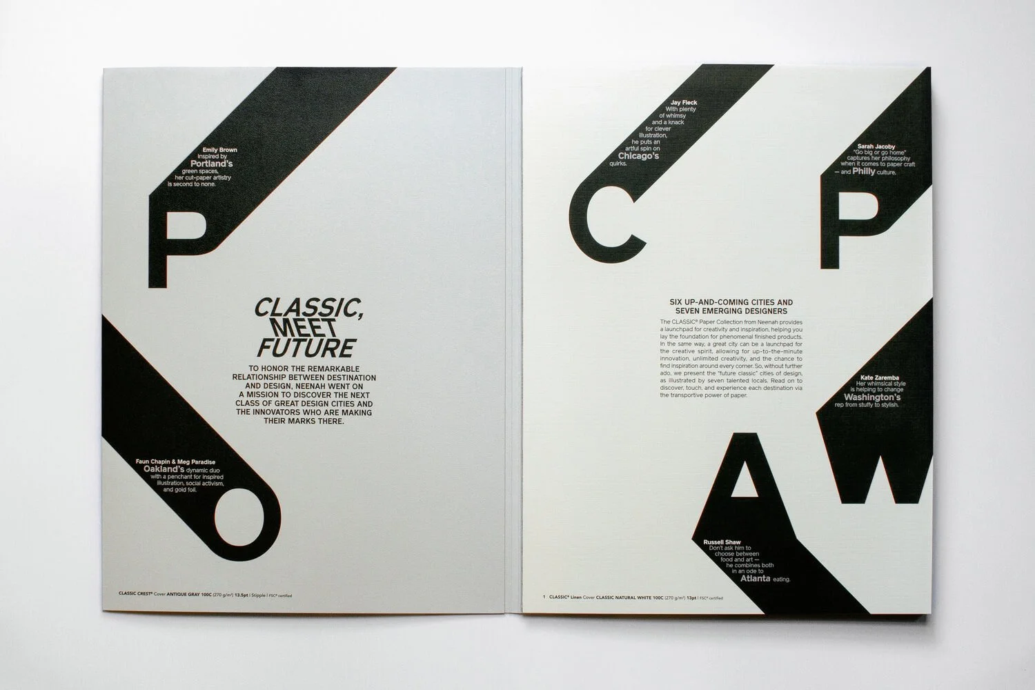 Neenah Paper partnered with Design Army to create the Future Classic promotion – a printed book aimed at honoring the remarkable relationship between destination and design. Neenah and Design Army sought out the next class of great design cities, and the innovators who are making their marks there. They selected six up-and-coming cities and seven emerging designers.