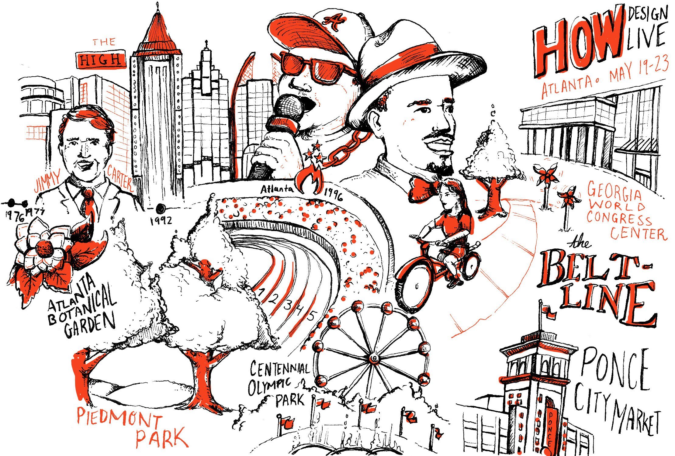 An illustrated history of the Empire State of the South – Neenah Paper's Illustrated Timeline and Map of Atlanta for HOW Design Live 2016.