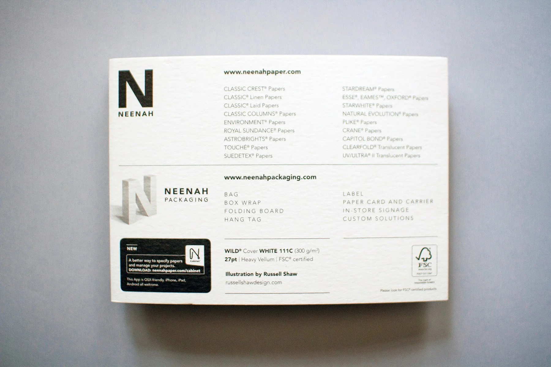 A 2/2 print on Neenah WILD® Cover WHITE 111C (300g/m2) | 27pt, Heavy Vellum | FSC® Certified