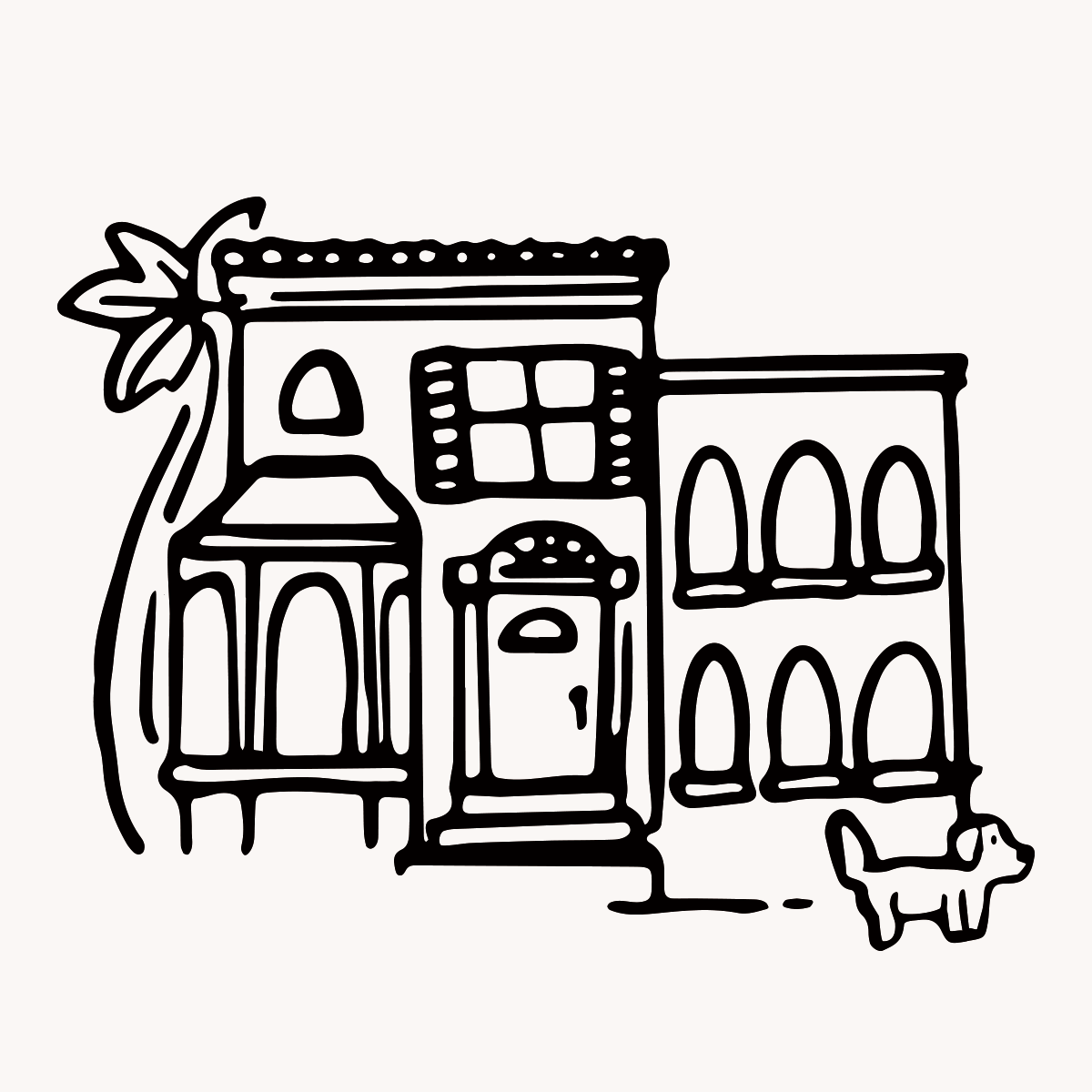 I used negative space illustrations on the end sheets to give a fun, flipbook-effect: on one side, a child is peeking out from behind the end sheet as a curtain (and if you look closely: a few small furry feet standing next to her). On the reverse side, the gold is inverted to draw in the back of the child, as well as reveal the puppy and small robot next to her behind the curtain.