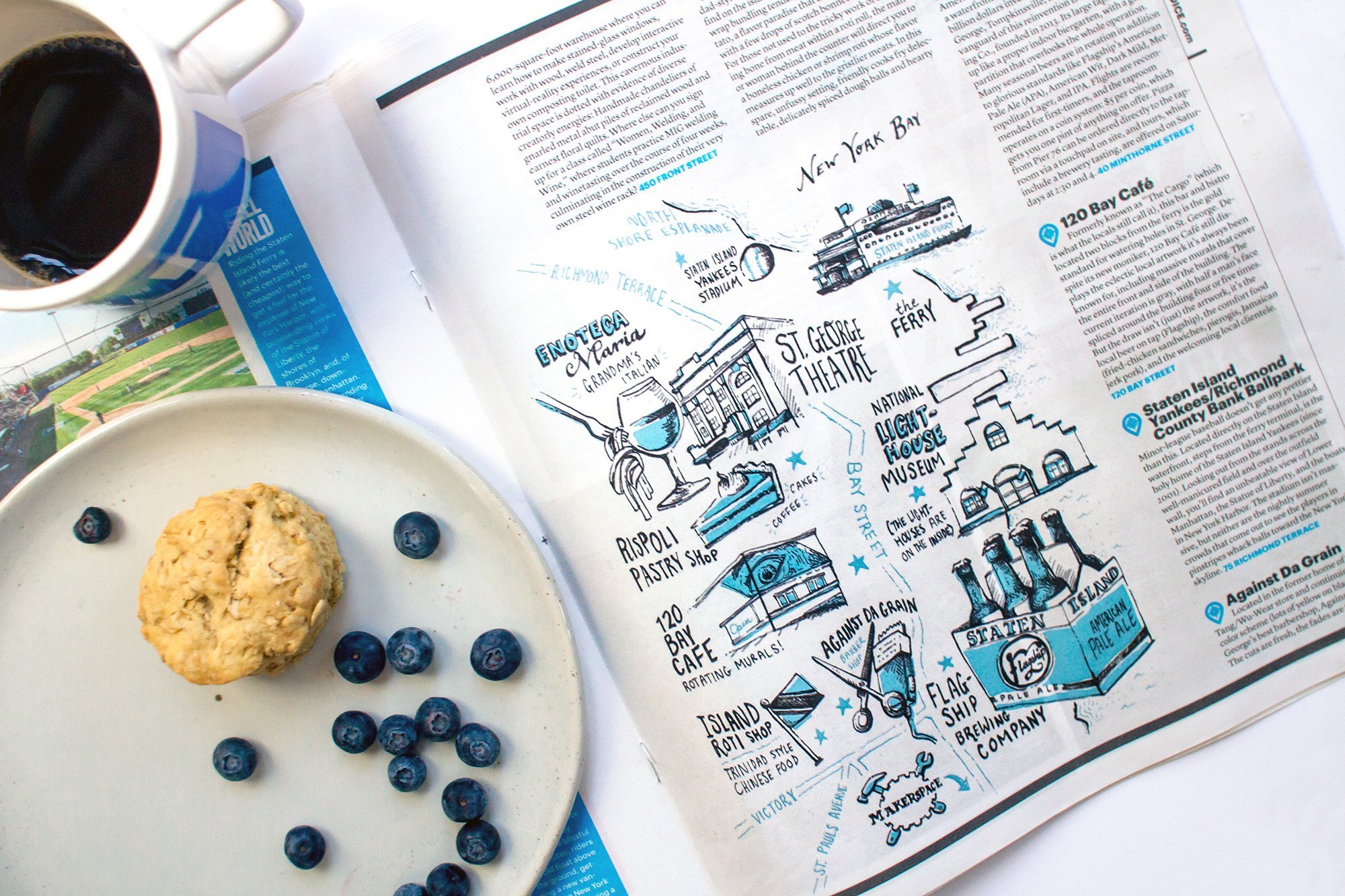 Hand-Drawn Maps for the Cover Story “New York by New Yorkers: A Locals' Guide to the City's Neighborhoods from Art & Activism to Bodegas & Biryani.”